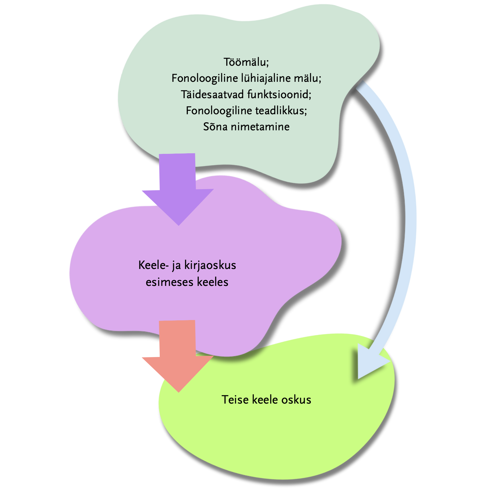Nagu jooniselt näha, ei ole teise keele omandamine õppimisraskustega õppijate puhul määravalt mõjutatud esimese keele oskusest, vaid pigem nende kognitiivsetest võimetest ning nendega seotud arengulistest piirangutest.