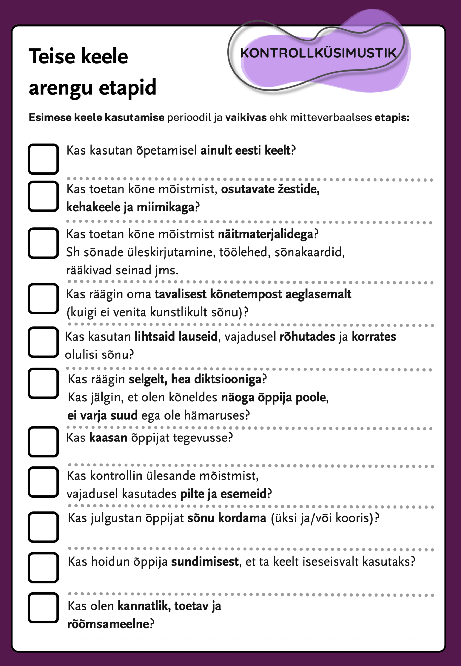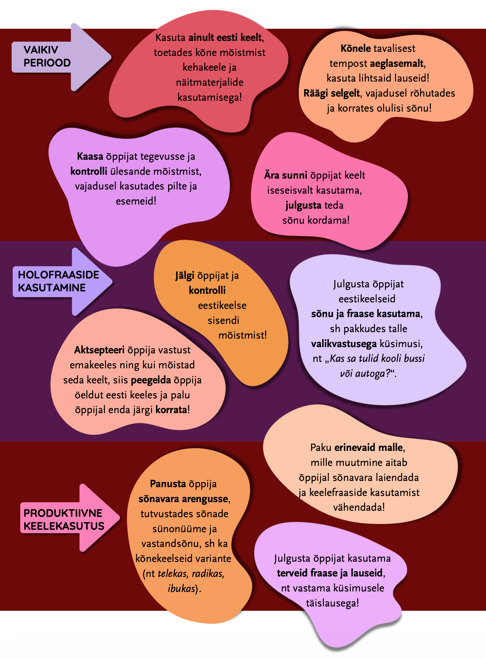Nende etappide eripäradega arvestamine ja vajaliku toetuse pakkumine õppijale teevad keele omandamise tõhusamaks.